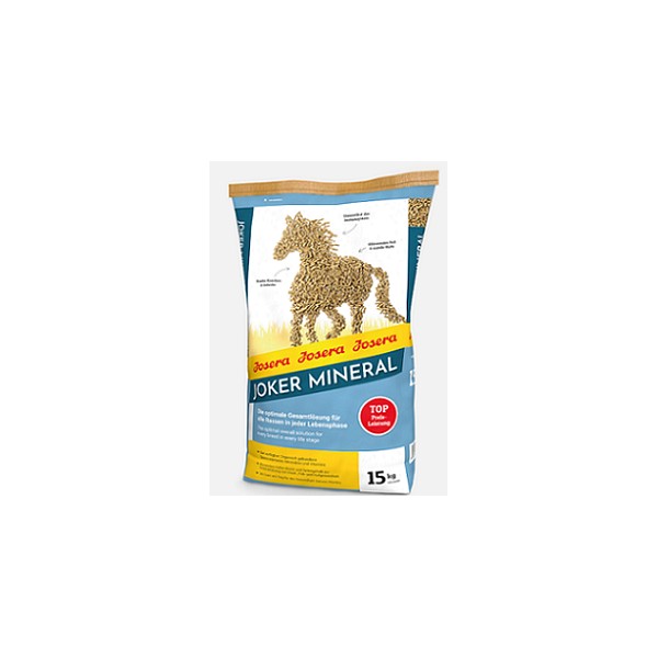Josera Joker-Mineral ist ein Premium-Mineralfutter für alle Pferde und Ponys jeden Alters und jeder Leistungsklasse. Jedes Pferd braucht zur Erhaltung seiner Lebensfunktionen Mineralien und Vitamine, auch wenn es keine Arbeits- oder Zuchtleistung erbringt. Josera Joker-Mineralenthält diese lebenswichtigen Substanzen in optimaler Abstimmung auf den Bedarf des Pferdes. Eine bedarfsgerechte Versorgung des Pferdes mit Mineralstoffen, Vitaminen und Spurenelementen ist die Voraussetzung für: